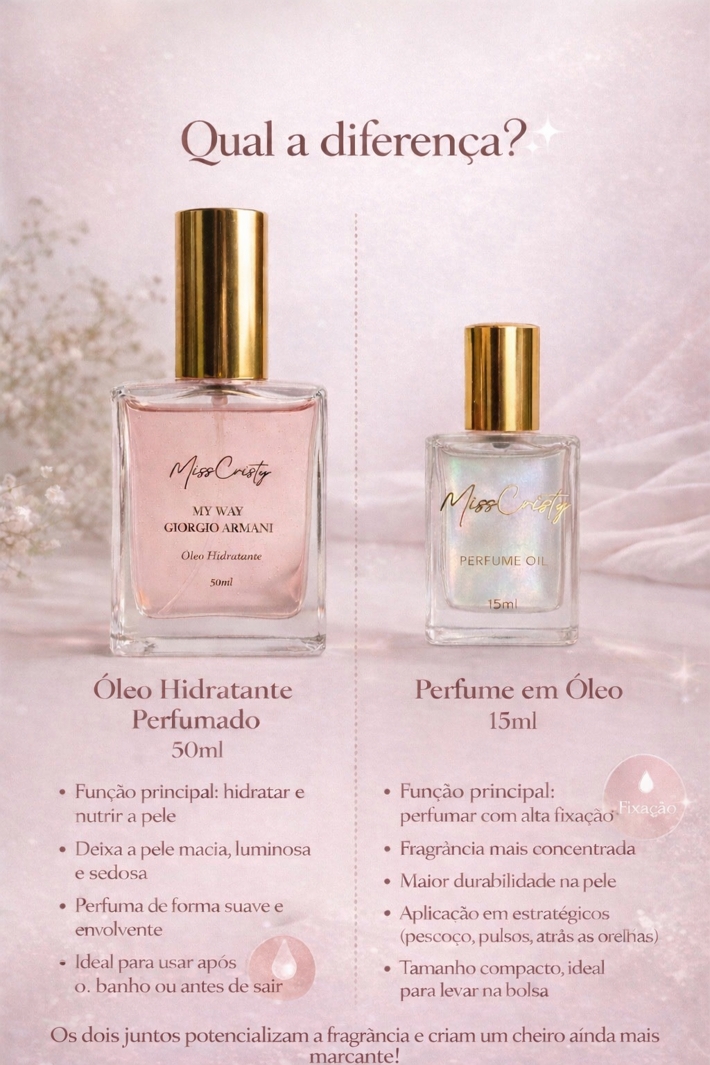Óleo Hidratante - 50 ml envolve a pele com o mesmo aroma irresistível do perfume em óleo, agora numa versão hidratante, leve e sedosa, ideal para aplicar no corpo todo. A sua fórmula nutritiva desliza suavemente sobre a pele, proporcionando hidratação profunda, brilho saudável e um toque aveludado, sem sensação oleosa.